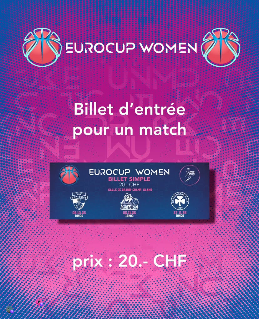Le Nyon Basket Féminin entre en scène pour l’EuroCup Women et vous propose de vivre 3 matchs de haut niveau européen au complexe sportif Grand-Champ à Gland.